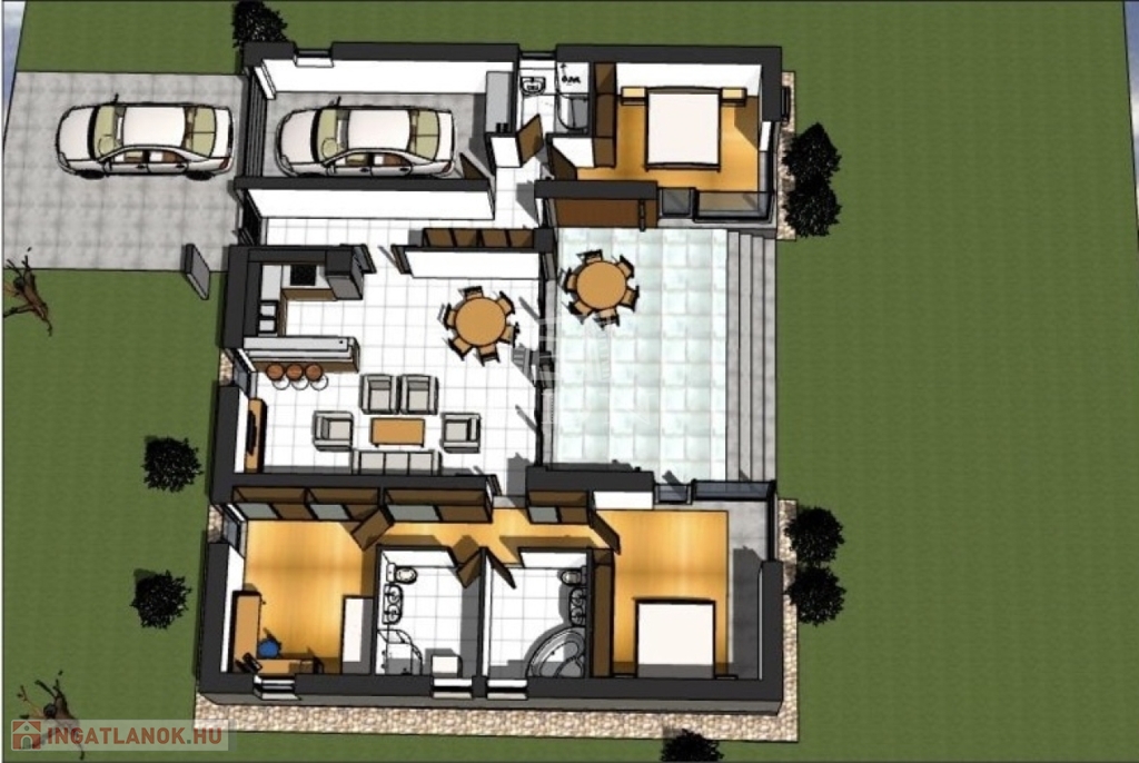 - garázs, melyből közvetlenül megközelítheti a belső tereket, így ha esik, ha fúj, az Ön kényelme teljes mértékben biztosított.