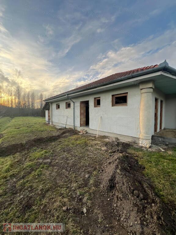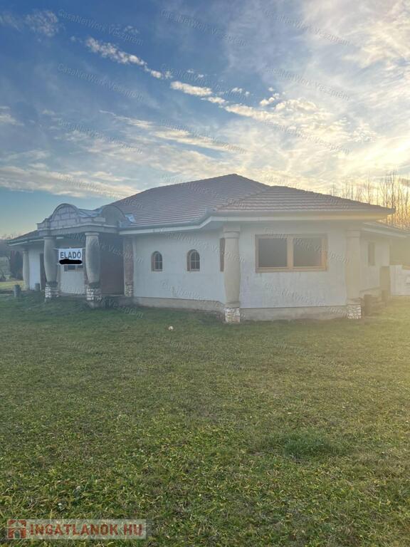 Eladó Döbröntén, a Bakonyalján, Pápától mindössze 14 km-re egy panorámás, 5547 m²-es telken álló, 210 m²-es szerkezetkész ingatlan. A telek közvetlenül az erdő mellett fekszik, így igazi bakonyi hangulat, nyugalom és természetközeli környezet várja az új tulajdonost. Az épület jelenlegi állapotából kifolyólag az elrendezés teljes mértékben az új tulajdonos ízlésére van bízva.