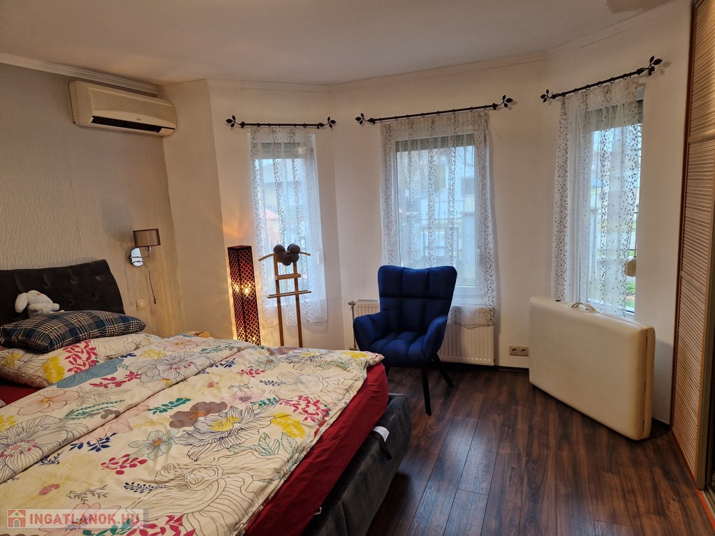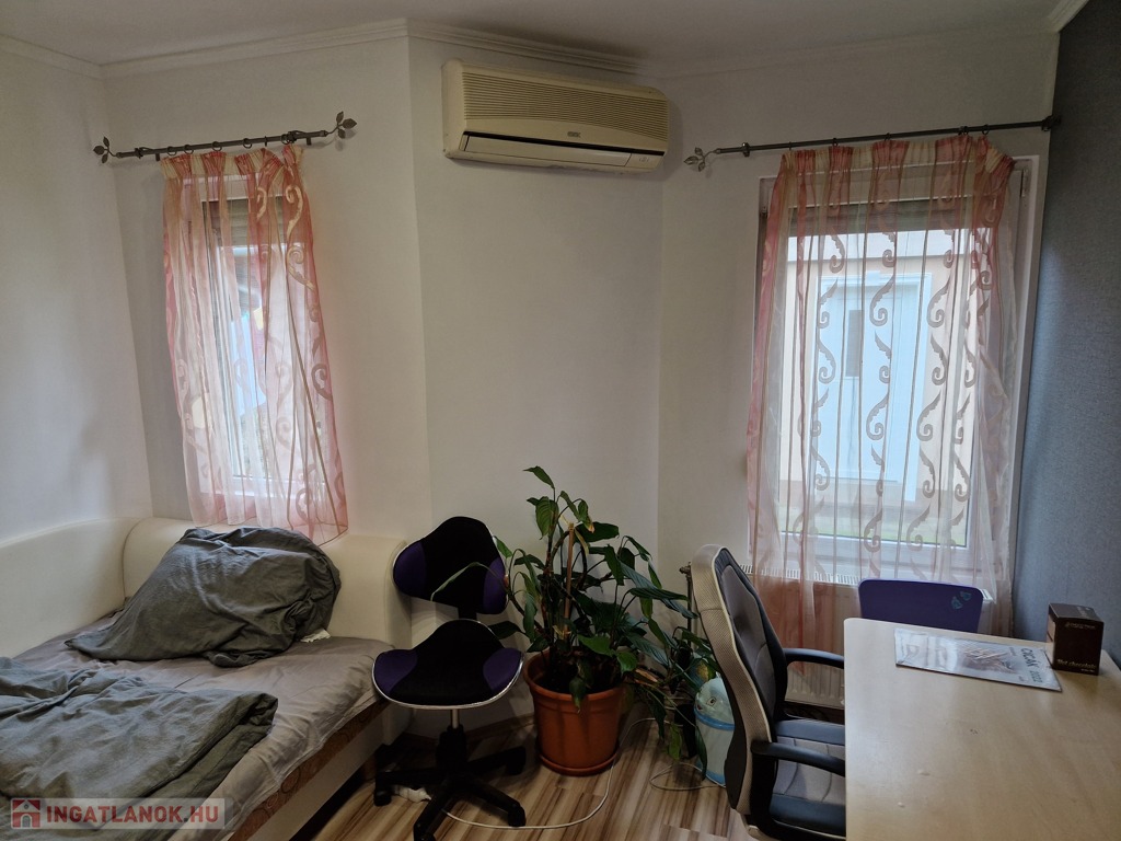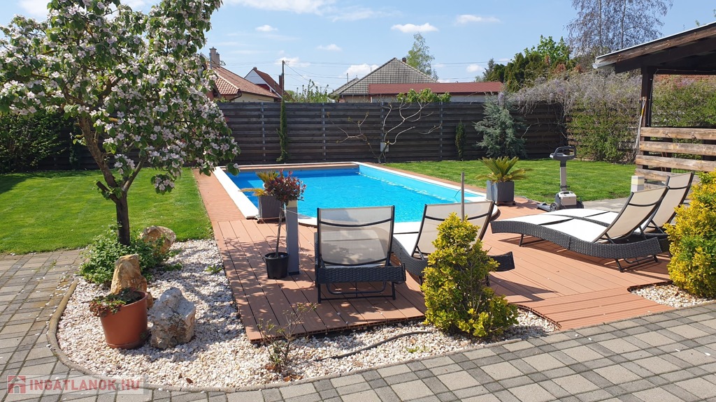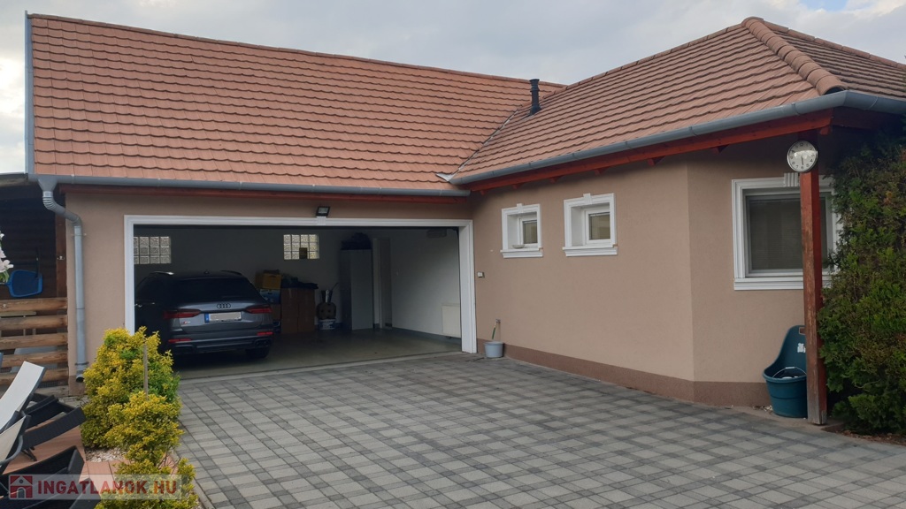 Domaszék kitűnő ellátottságú és közlekedésű részén, csendes nyugodt környezetben, 2005-ben épült, 923 nm-es rendezett, parkosított telken, 2 egyszintes ház (129 nm, 78 nm), kétállásos garázzsal, tágas medencével, barkácsműhellyel együtt kedvező áron eladó. A nagyobbik, könnyűszerkezetes, klimatizált ház nappali + három szobás, 20 nm-es fedett terasszal. Gáz cirkó fűtésének, 20 cm-es szigetelésének köszönhetően kedvező rezsijű. A kisebbik, két szobás ház téglaépítésű, szintén szigetelt (6 cm), klimatizált, egyedi cirkó padlófűtésű. A lakók és vendégeik kényelmét hőszivattyús fűtésű 4 x 8 méteres, 1,5 méter mély medence szolgálja. A telekre és a garázsba is elektromos kapun keresztül kényelmesen juthatunk be. A kétállásos garázs 34 nm-es. A kert gondozást fúrt kút és öntözőrendszer segíti. Ideális akár két generáció részére is.