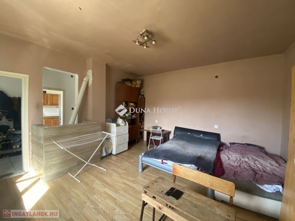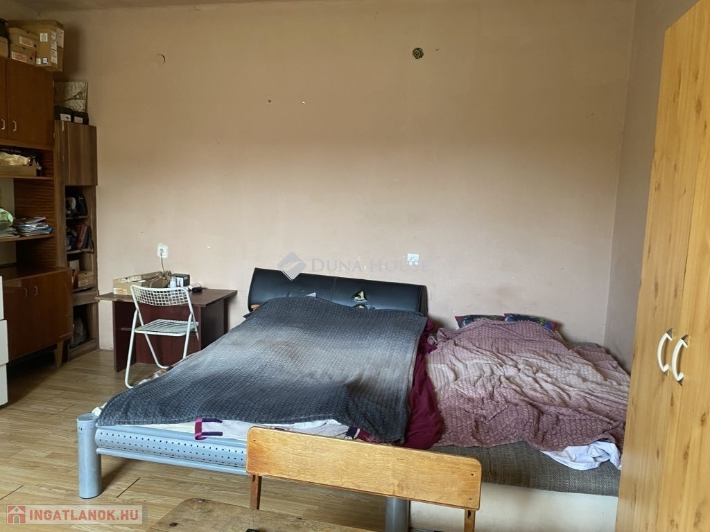 2. Ház.Kívül- belül teljesen felújítandó, jelenleg lakhatásra nem alkalmas, két bejáratos ingatlan az 1950 években épült. Ide csak villany van bevezetve. Jobb oldali falához épült a másik ház. 5 db helyiséggel rendelkezik egyik fala utca fronti, betonozva aljzattal rendelkeznek. Tetőnél lett újra vezetékelve. Csatorna csonk kerten belül, gáz utcában.