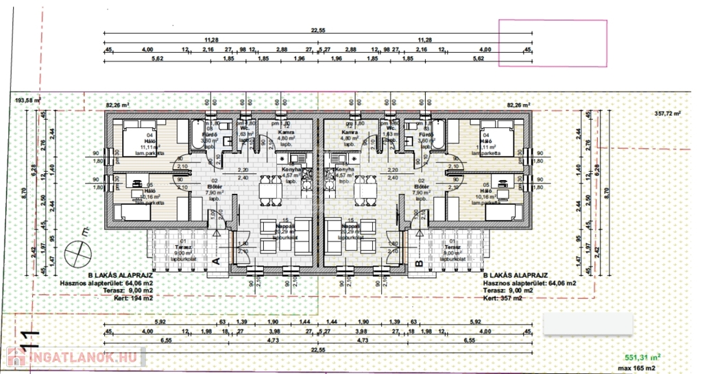 A Lakás - 64,06 m2, telekméret: 194 m2 - ára 49.900.000 ft