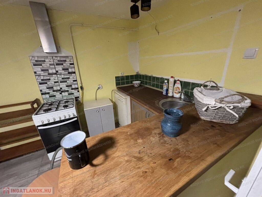 Az ingatlan kiváló elhelyezkedésű, könnyen megközelíthető, mégis csendes környezetben található. Tégla építésű, 59 nm-es, a hozza tartozó telek területe 898 nm. A házban egy nagy méretű szoba, egy tágas fürdőszoba és egy légtérben az előszoba, konyha, étkező kapott helyet.