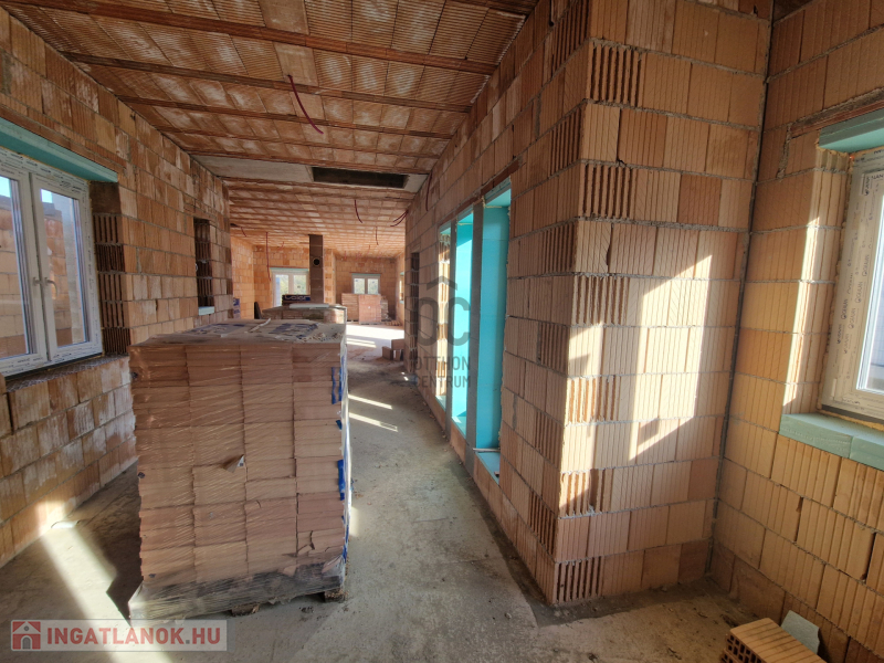 A felmenő falazat, a tetőszerkezet teljes egészében elkészült. A nyílászárók részben beépítésre kerültek.