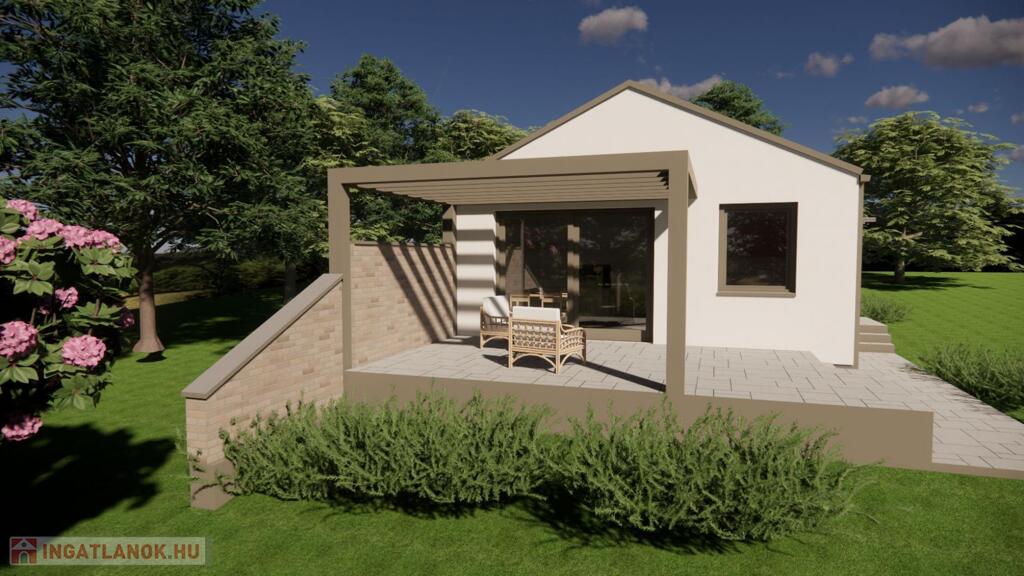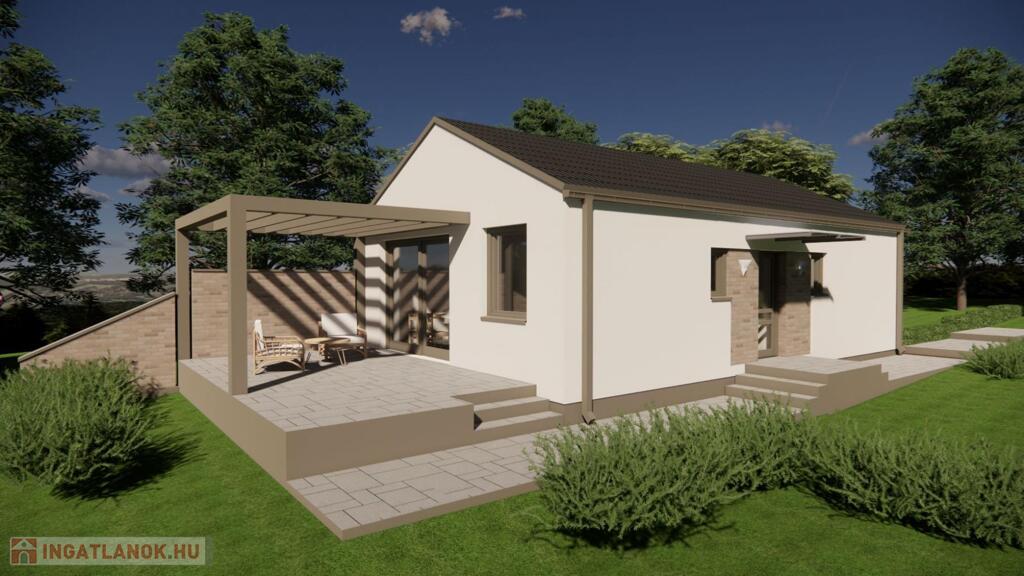 Dunaalmás. 1100 négyzetméteres telek. Új építésű. Könnyűszerkezetes. Családi ház.