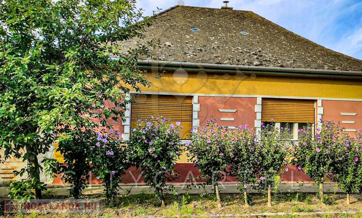 A családi ház az 1960-as évek elején épült. Masszív tégla falai 3+1 szobát, konyhát, kamrát, fürdőszobát WC-vel, valamint közlekedőt és előszobát zárnak közre. A ház melegéről részben gázkonvektorok, illetve villanyradiátor és kandalló gondoskodik. Az épület egy részére külső szigetelés került, az igény szerinti felújítás új tulajdonosára vár. A 2158 m2-es telek első része udvar nyári konyhával, kúttal, füstölővel, ólakkal, garázzsal, hátul gazdálkodásra alkalmas terület található.