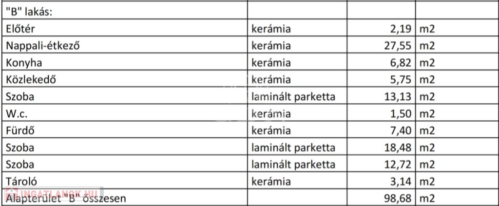 B-lakás 98,68 nm 306 m2-es telekrésszel,