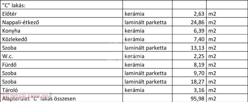 C-lakás 95,98 nm 373 m2-es telekrésszel.