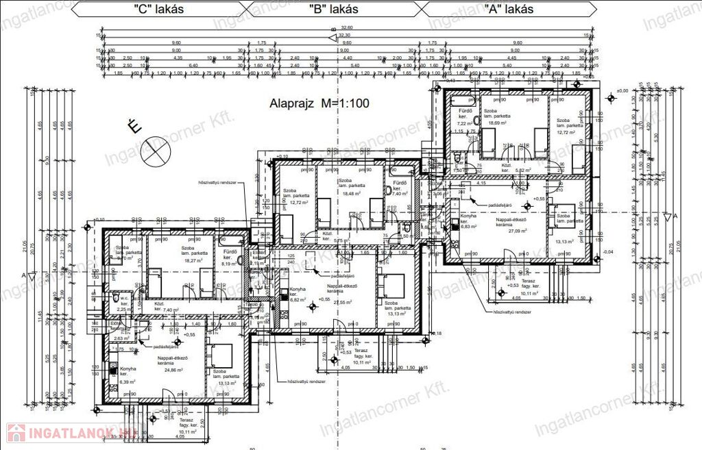 •C LAKÁS: nettó 95,98 m² | Telek: 373 m²
