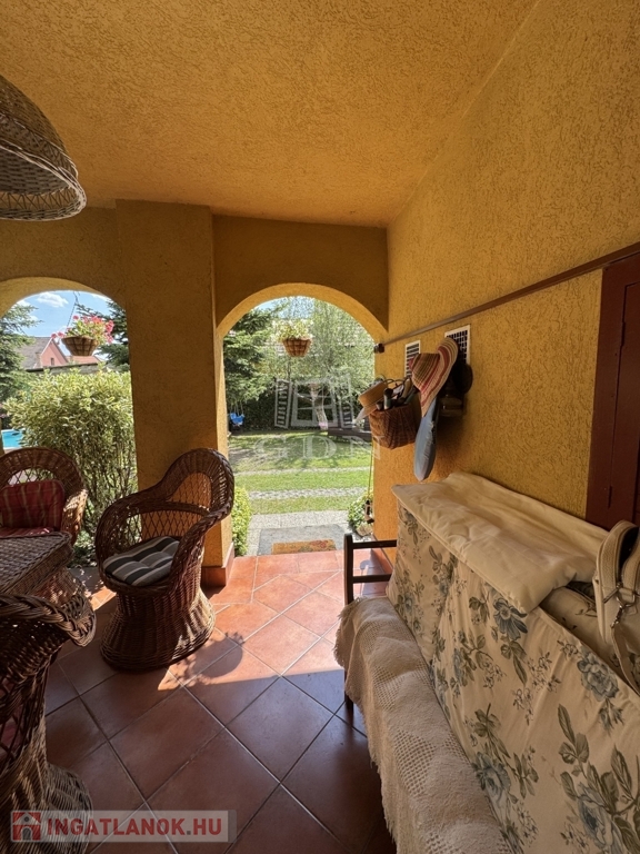 A gyönyörűen gondozott, parkosított 587 nm-es kertben, ami kiváló helyszín a kikapcsolódásra és családi összejövetelekre, 2 db teljesen külön bejáratú ház található.