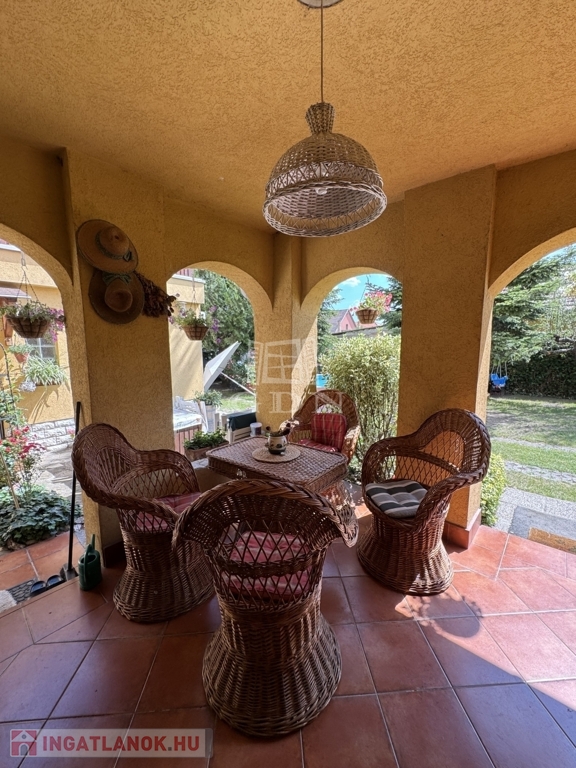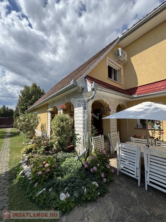 A gyönyörűen gondozott, parkosított 587 nm-es kertben, ami kiváló helyszín a kikapcsolódásra és családi összejövetelekre, 2 db teljesen külön bejáratú ház található.
