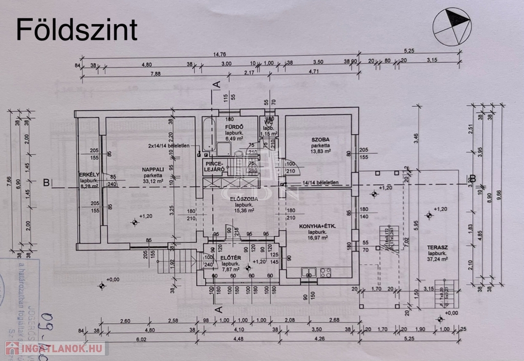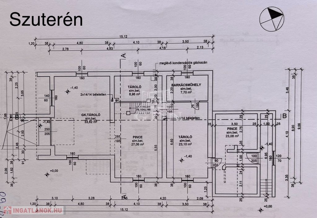 A pinceszinten (nettó 124 nm) tárolók és egy komfortos LAKRÉSZ is kialakításra került mely külön fütési körön van.