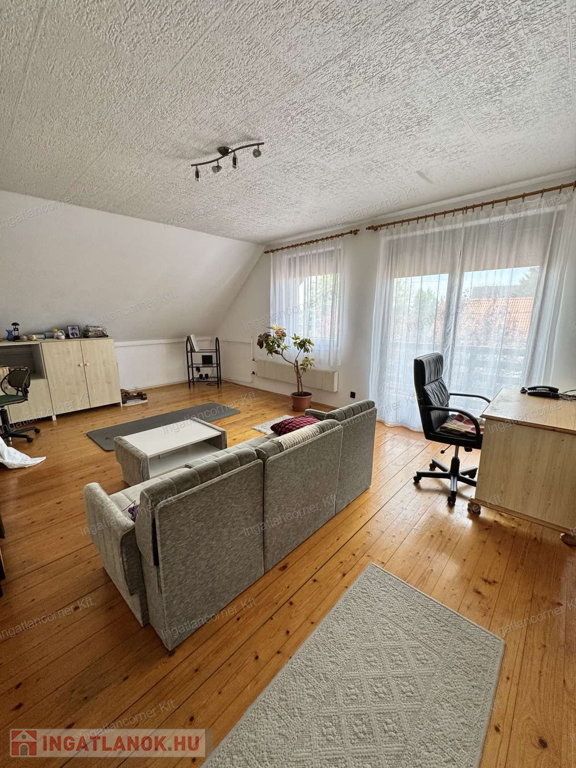 Elrendezését tekintve kiváló: előszoba, hatalmas konyha étkezővel, kamra, fürdőszoba (zuhany, wc, bidé), jó méretű nappali, nagy hálószoba. Szintén a földszinten külön bejáratú lakrész található: előszoba, konyha+ étkező, zuhanyzós fürdő wc-vel és egy nagy szoba. Az emeletre szintén külön bejárat vezet fel: konyha, 3 hálószoba, még egy nagy nappali, kádas fürdőszoba, külön wc. 12 nm erkély is tartozik az emeleti nappalihoz. A padlástér pakolható.