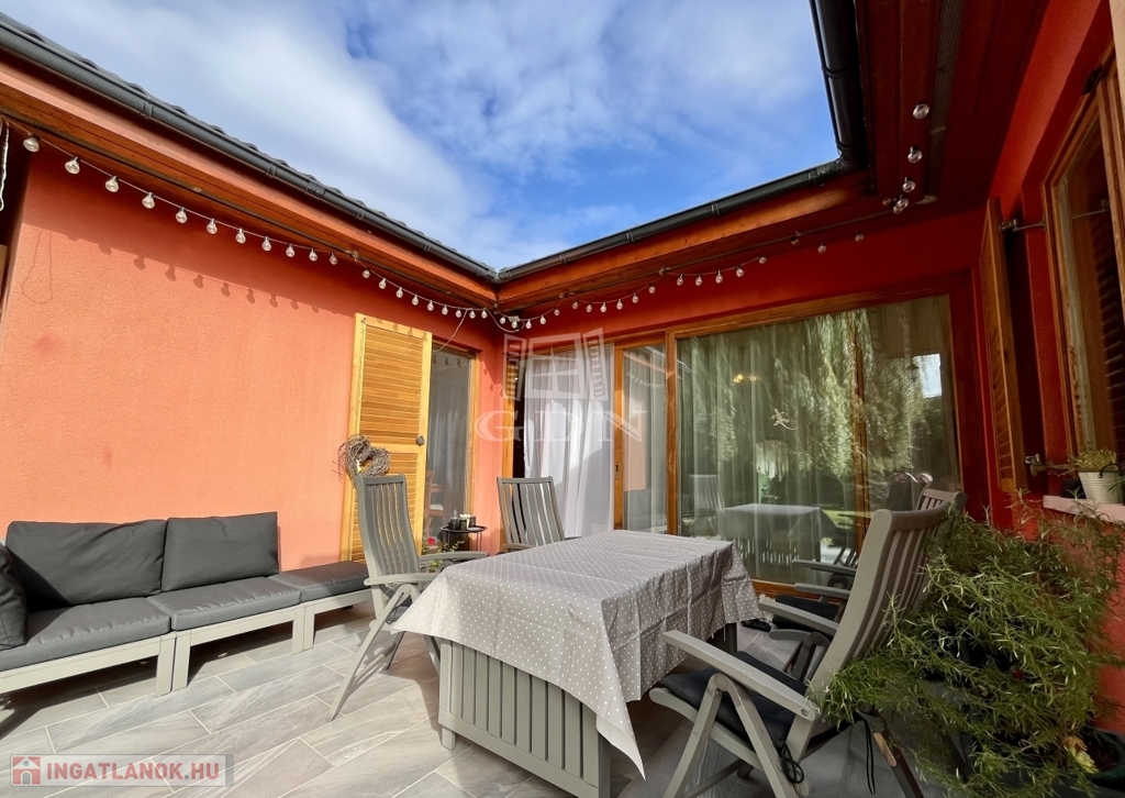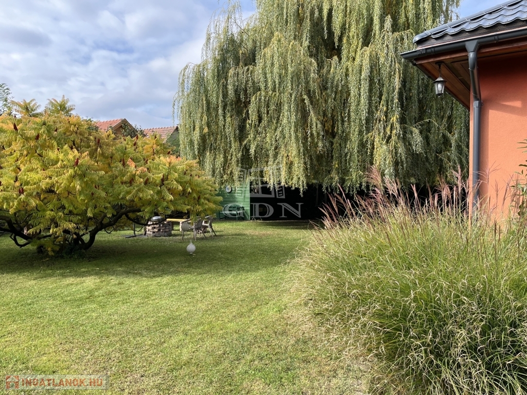 gondosan karbantartott, termő gyümölcsfákkal, dísznövényekkel és hangulatos kerti grillezővel – igazi nyugalom-sziget, ahol a természet és a harmónia egyszerre van jelen. A 15 nm-es tároló praktikus és esztétikusan illeszkedik a környezethez.