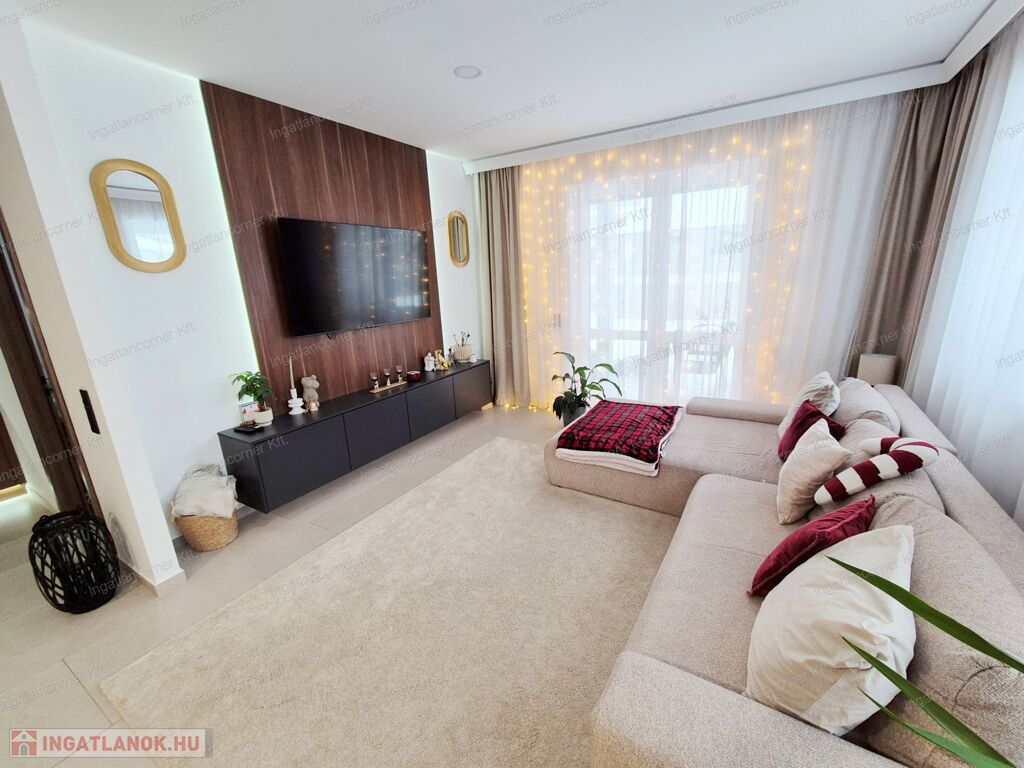 -BEÉPÍTETT BÚTOROK A VÉTELÁRBAN: az előszobában, a nappaliban lévő média fal és a komplett konyhabútor a vételár részét képezik.