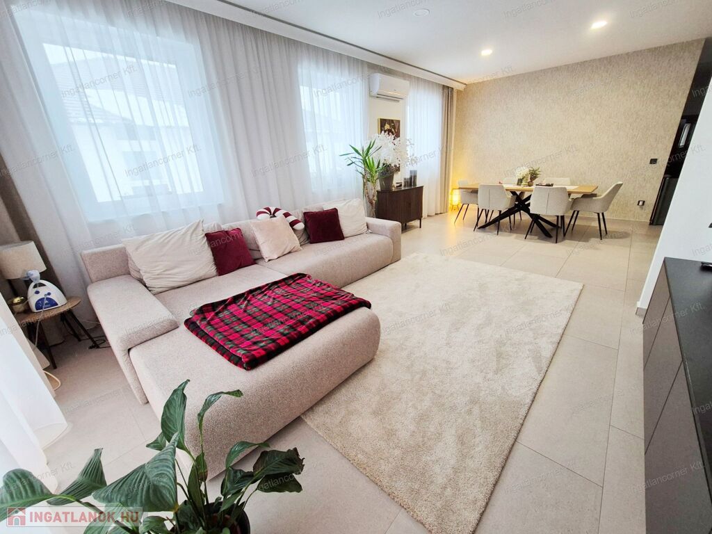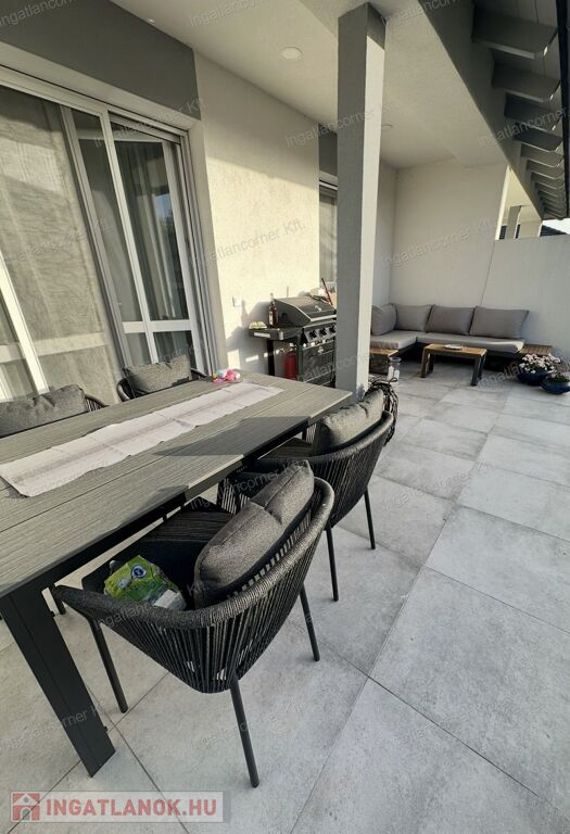 Az ingatlan 425m2 telekkel rendelkezik, melynek kertje a műfűnek köszönhetően GONDOZÁSMENTES, a lakótér 105 m² hasznos alapterülettel rendelkező ingatlan, melynek ELOSZTÁSA és TÁJOLÁSA KIVÁLÓ. A lakótéren túl egy 18,44 m²-es fedett terasz érhető el a nappaliból. A ház igényesen berendezett, modern megoldásokkal és minőségi anyaghasználattal készült.
