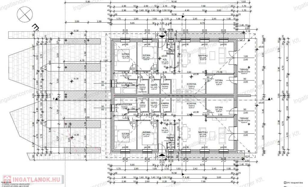 -külső határoló főfalak egységesen 30 cm vastag égetett vázkerámia téglából, +15 cm hőszigeteléssel,