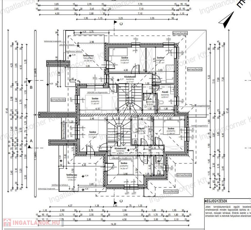 Az emeleten 3 hálószoba, fürdőszoba wc-vel, valamint egy külön illemhelyiség található.