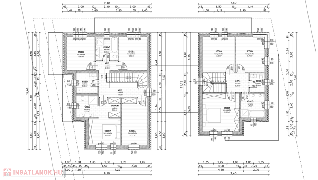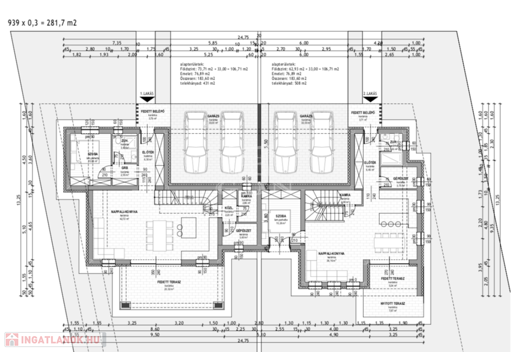 A 2 sz. lakás alaptrülete:156m2 alapterületű két szinten 4db. hálószobával, 3 fürdőszobával, dupla állásos garázzsal épül.