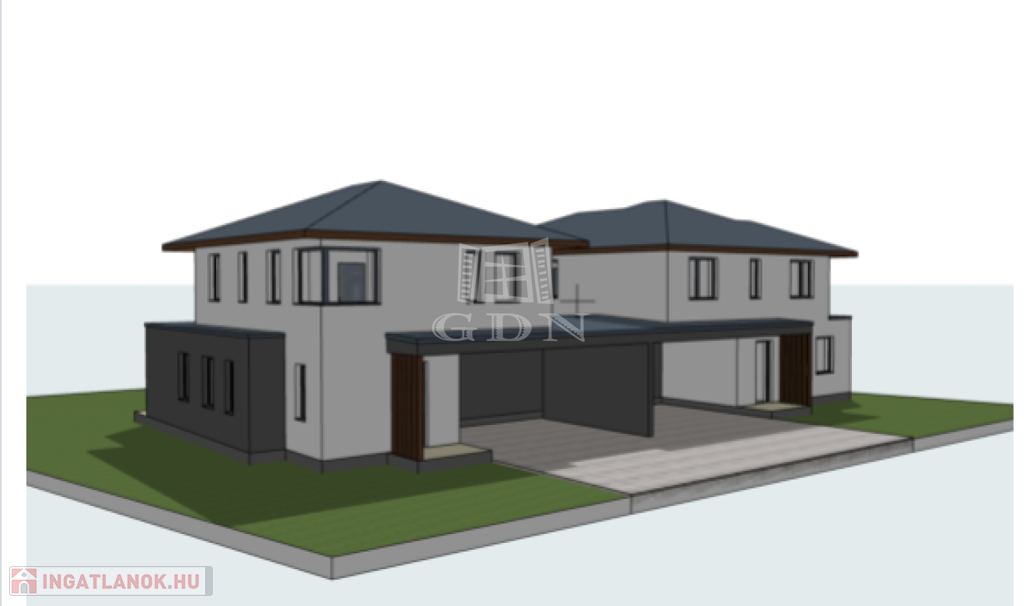 Dunaharaszti Alsóvárosban kétszintes ikerház mindkét lakása dupla állásos garázzsal eladó.