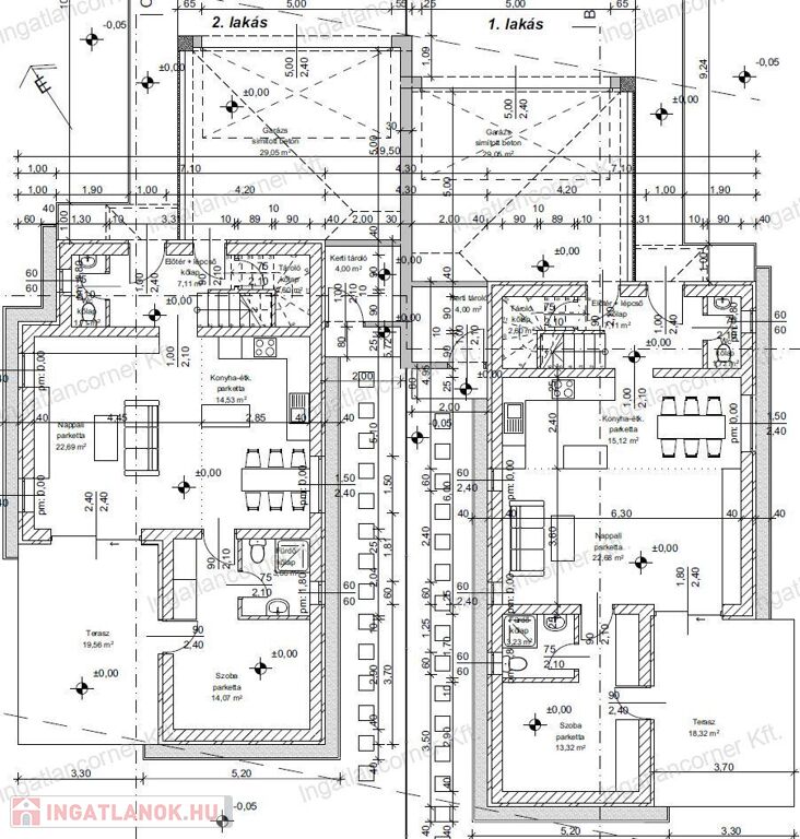 A lakásokhoz tartozó telek méret több mint 415nm2