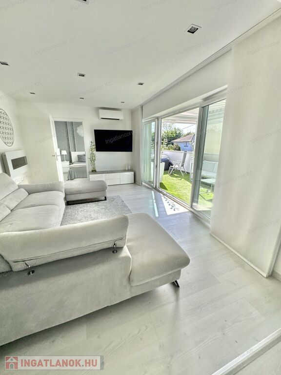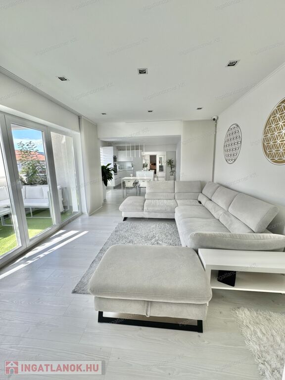 Hogy miért? Különleges kialakítása miatt valójában az ország legegyedibb ingatlanja. Egy álomszép, hibrid lakás: penthouse lakás és kertes sorház keveréke. Továbbá emelt műszaki felszereltségű, 4 HÁLÓSZOBÁVAL, 22 nm-es, részben fedett (elektromos fedés) terasszal, ahol a jacuzzi is elfér. Mivel 2019-ben épített, teljesen újszerű, kocsibeállóval, ZEN kerttel, /amiben kis kerti tó is kapott helyet a süllyesztett intim kerti szett mellett/ illetve a TELJES BERENDEZÉSSEL EGYÜTT ELADÓ.