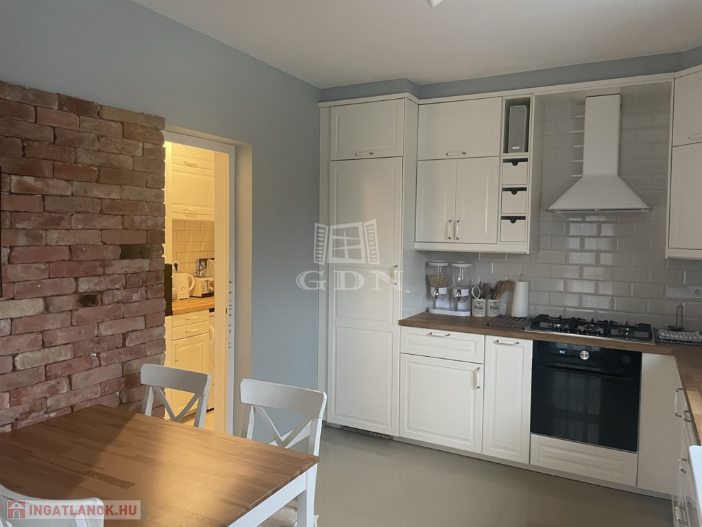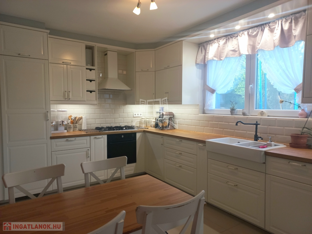 -Konyha: Gáz főzőlap + elektromos sütő + elszívó, kamra – modern, jól felszerelt.