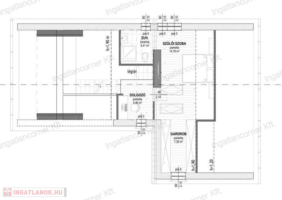 valamint egy privát szülői lakrész saját gardróbbal és fürdővel