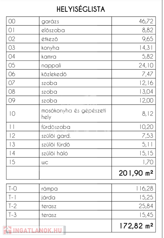 Nettó 149 nm alapterület, 47 nm garázs, 41 nm terasz.