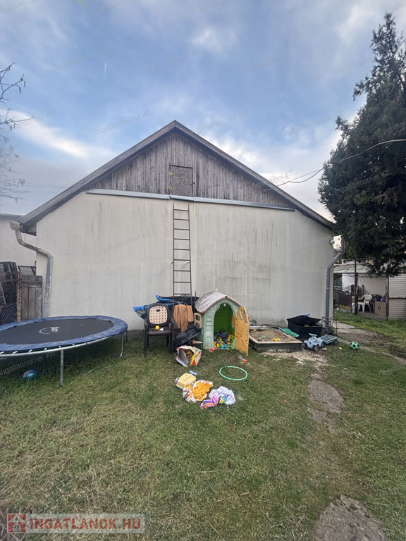 Eladó (vagy beszámítással nagyobb alapterületű ingatlanra cserélhető) Dunaharaszti Petőfi liget részén, egy 305 m2 telekrésszel rendelkező, 65 m2 alapterületű, nappali + 1 hálószobás, felújítandó állapotú, vegyes falazatú ikerházrész és a hozzá tartózó 20 m2 alapterületű szerelőaknás garázs.
