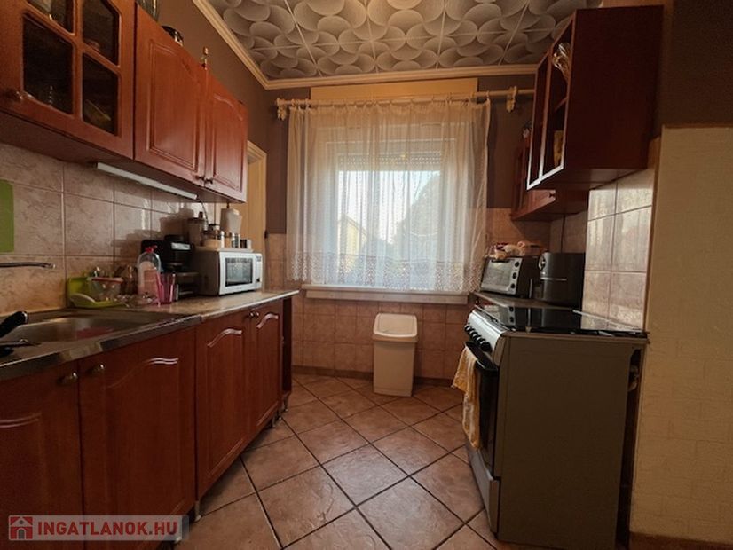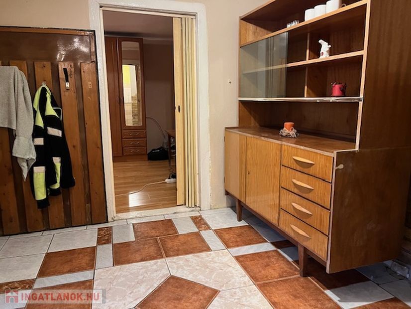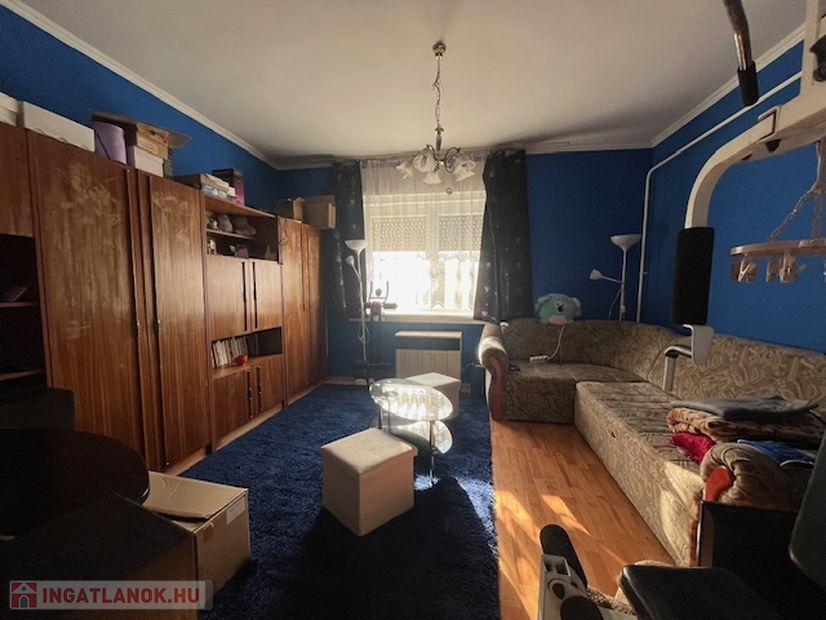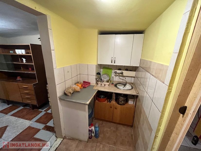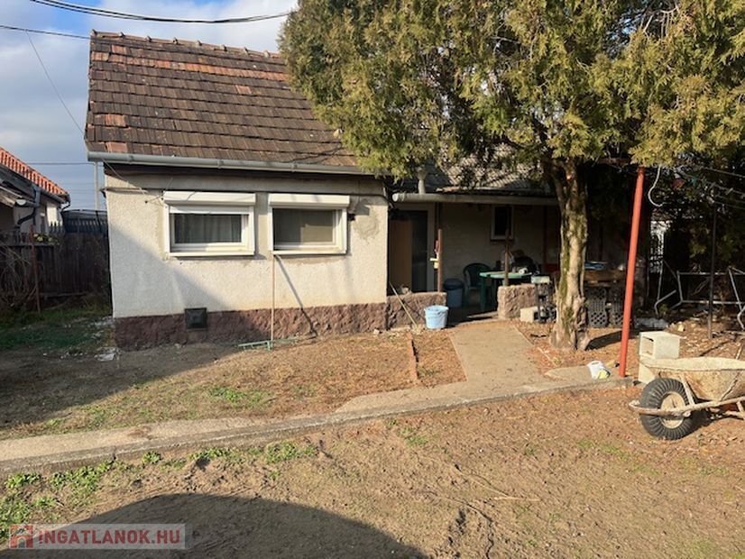 A telken külön álló 35 nm 1 szoba,konyha,fürdőszobás ház gázfűtéssel.