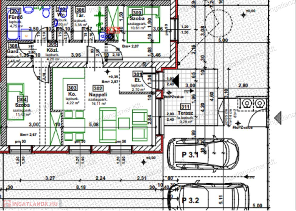 •Laminált parketta a hálószobákban, hidegburkolat a többi helyiségben (szabadon választható 3.000,-/m2-ig tartalmazza az ár)