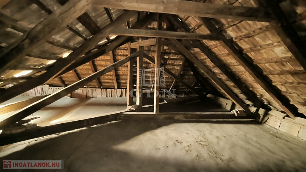 A tetőtér tiszta, a gerendázat masszív, akár lakhatásra, tárolásra is használható.