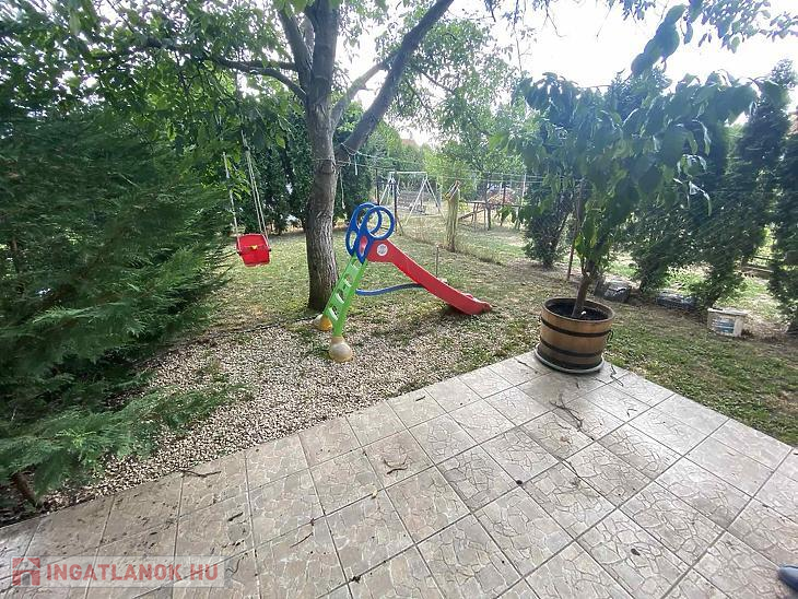 A 434nm-es kert karbantartott, hátul sütögető sarok lett kialakítva, mögötte pedig egy 31,5 nm-es garázs.