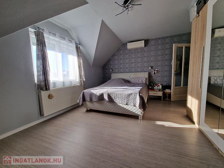 Az ingatlan 172 nm összterületű, ebből 139 nm lakótér. A kialakítás kifejezetten jól használható: négy hálószoba, amerikai konyhás nappali, gardrób, két fürdőszoba + külön WC biztosít elegendő teret akár nagyobb családnak vagy több generációnak is.