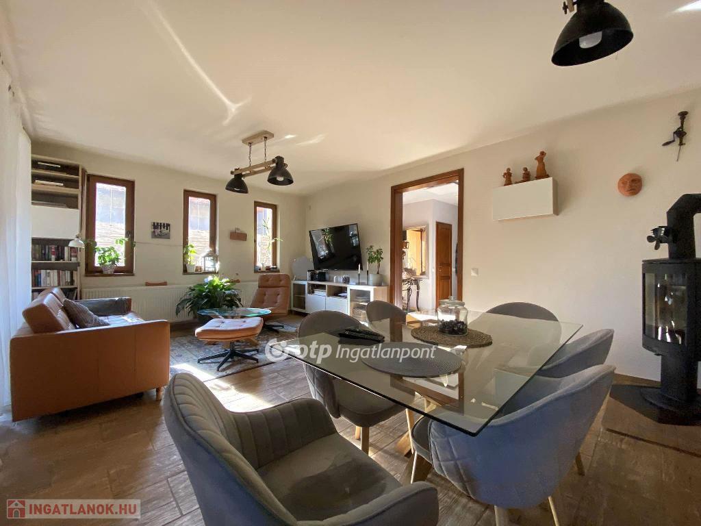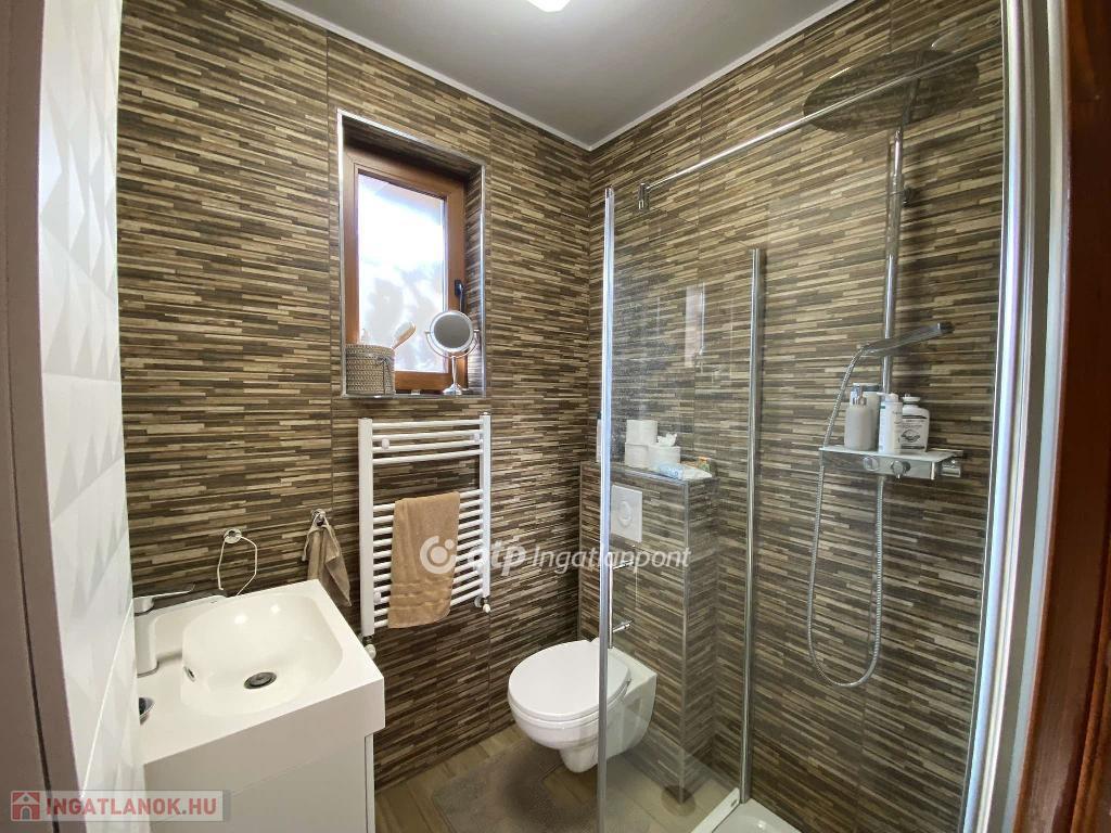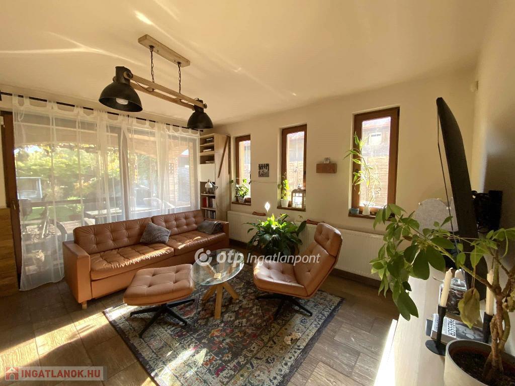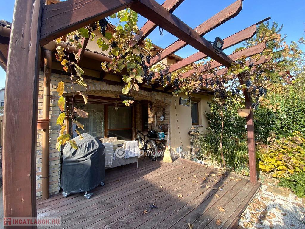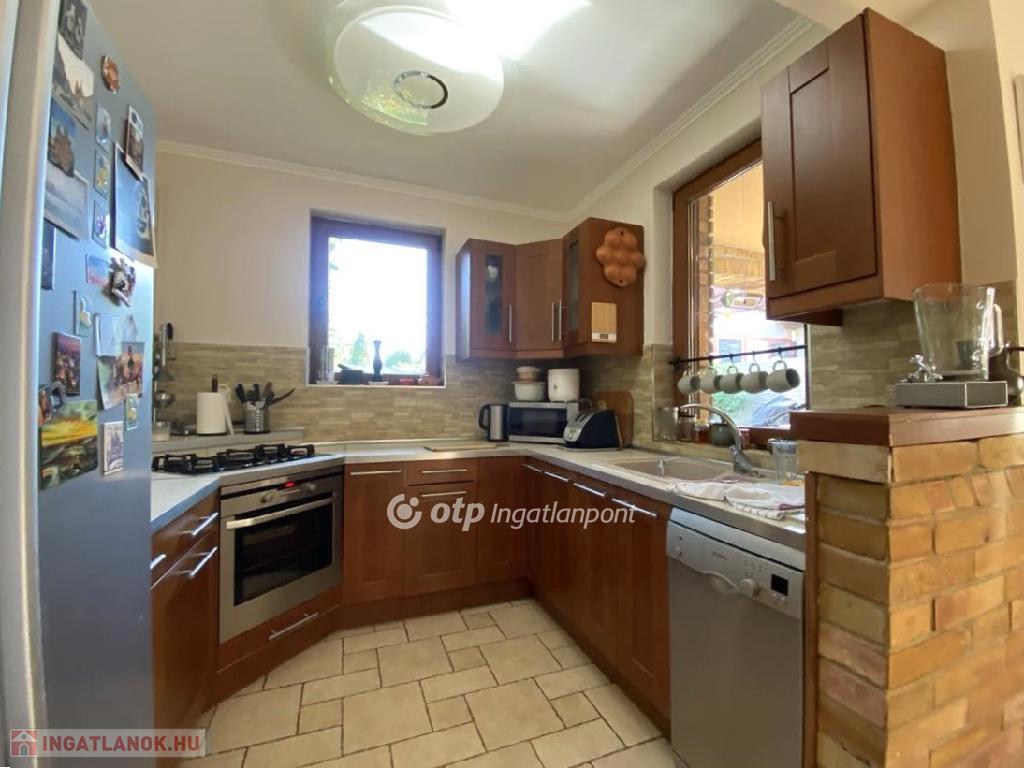Pest vármegye, Dunakeszi, 112 m2-es 4 hálószobás újszerű ikerház eladó. Az ingatlan 2008-ban épült, megkímélt állapotú, gondosan karbantartott. Az épülethez 405 m2 saját, intim kertrész tartozik. Elosztása praktikus: a földszinten található egy 35 m2-es amerikai konyhás nappali, egy 11 m2-es háló, zuhanyzós fürdőszoba, tároló és egy 18 m2-es garázs. Az emeleten 3 kényelmes méretű hálószoba, egy kádas fürdőszoba, valamint egy 5 m2-es dolgozószoba. A ház fűtését cirkó kazán adja radiátoros hőleadással, a hidegburkolatú helyiségekben padlófűtéssel, kiegészítésként egy JOTUL kandalló is ad meleget. A nappalihoz csatlakozik egy 10 m2-es terasz, az emeleten az egyik hálószoba erkélykapcsolatos. Az ingatlan csendes helyen található, mégis minden szolgáltatáshoz közel. Megtekintése rugalmasan megoldható, előzetes időpont egyeztetést követően. Részletekért kérem hívjon!