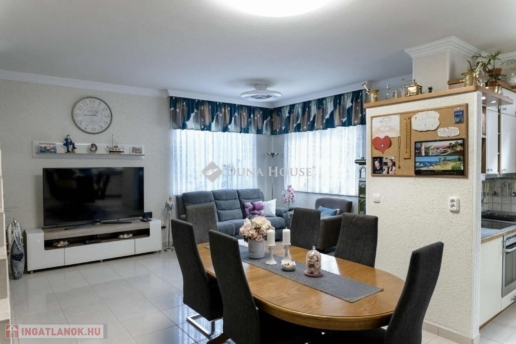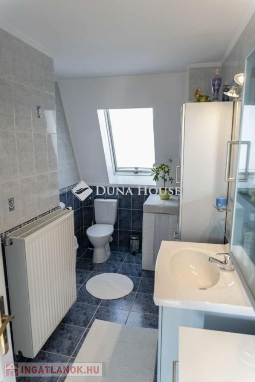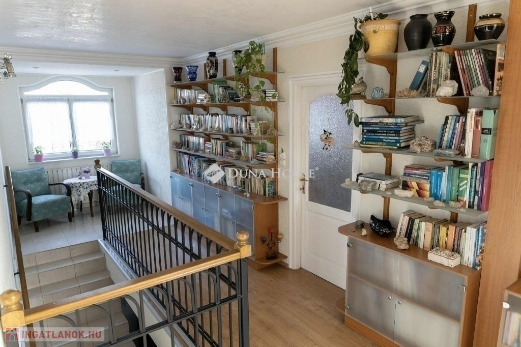 A nappaliban beépített gyönyörü cserépkályha mellett élvezhetjük a téli estéket. A konyha beépített, gépesített konyhabútorral. A földszinti hálószobából gardróbszoba és fürdőszoba nyílik. A ház alatt a földszintről megközelíthető 12 nm-es pince található. A házból nyílik az egy kocsi beállós garázs. A kertben fedett kocsibeálló is található, ami az elektromos kapun keresztül közelíthető meg. Az emeleten két szoba, beépített gardróbszekrényekkel, nappali és fürdőszoba található. A kert gondozott, ápolt pázsittal, nővényekkel, grill sarokkal és dézsafürdővel, valamint háromrészes tárolóval, a bejárat előtt hangulatos, fedett nagy terasszal.