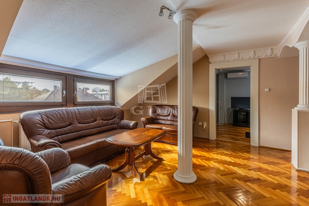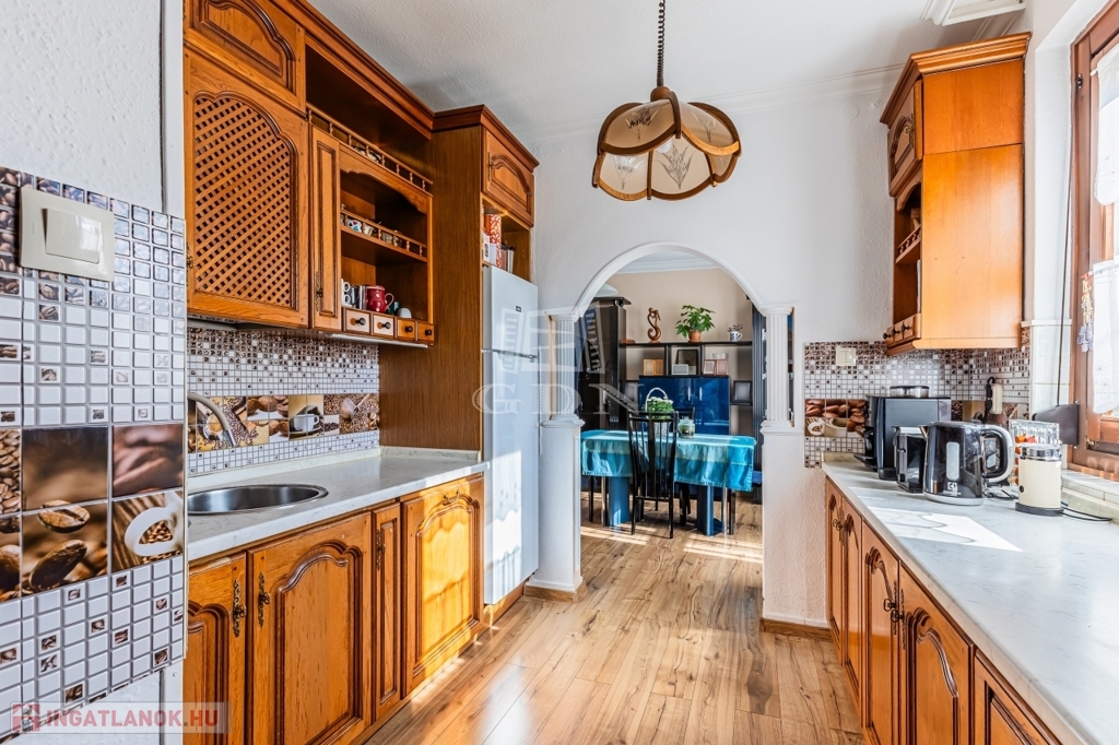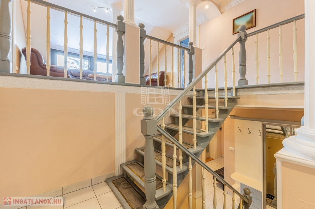 Dunakeszin kínálunk eladásra egy igényesen kivitelezett, szigetelt, dupla komfortos, önálló családi házat, különálló garázzsal, 600 nm-es telken. A földszinten minőségi, gépesített konyha, nappali, két szoba, két fürdőszoba, az emeleten egy nappali és két hálószoba kapott helyet. Egyedi kialakításának köszönhetően, élhető, tágas terek jellemzik, két generáció kényelmes együttélését is biztosítani tudja. A szobákban elhelyezett 4 db hűtő-fűtő klíma, a szuterén szinten háztartási helyiség, egy közösségi tér, tároló és egy finn szauna növelik a komfortot. A ház körül 40 nm-es hangulatos terasz található, a füvesített kerthez automata öntözőrendszer tartozik. Az energiahatékonyságról 5 kw-os napelem rendszer gondoskodik. Ajánlom azoknak akik vágynak egy minden igényt kielégítő, tökéletes otthonra, csendes, szép környezetben és fontos szempont számukra a jó infrastruktúra.
