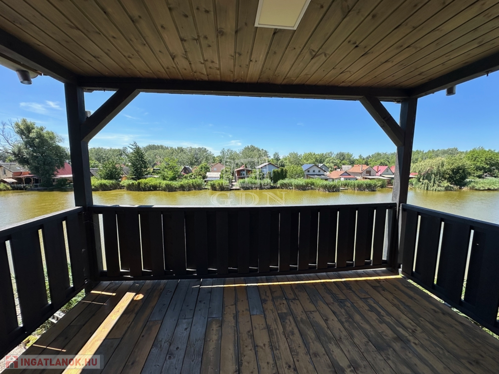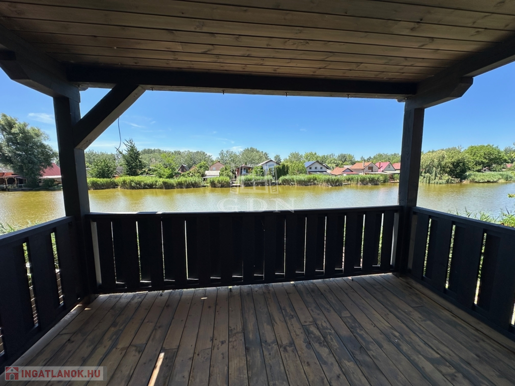 A szintenként rendelkezésünkre álló erkélyeken kívül a ház előtt a tó felé, kis fedett terasz áll rendelkezésünkre, mögötte egy tárolóval, ahová el tudjuk rakni horgászbotjainkat.