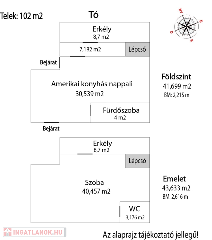 A felső szint jelenleg egy légtér a wc-t leszámítva, de akár több szoba is kialakítható.