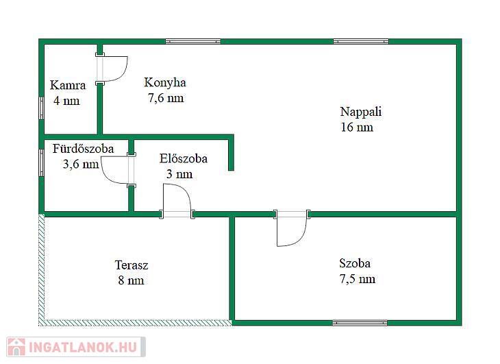 Az elosztás ideális: 24 nm-es amerikai konyhás nappali, egy 7,5 nm-es félszoba, zuhanyzós fürdőszoba, előszoba és egy hangulatos, fedett terasz biztosítja a kényelmes mindennapokat.