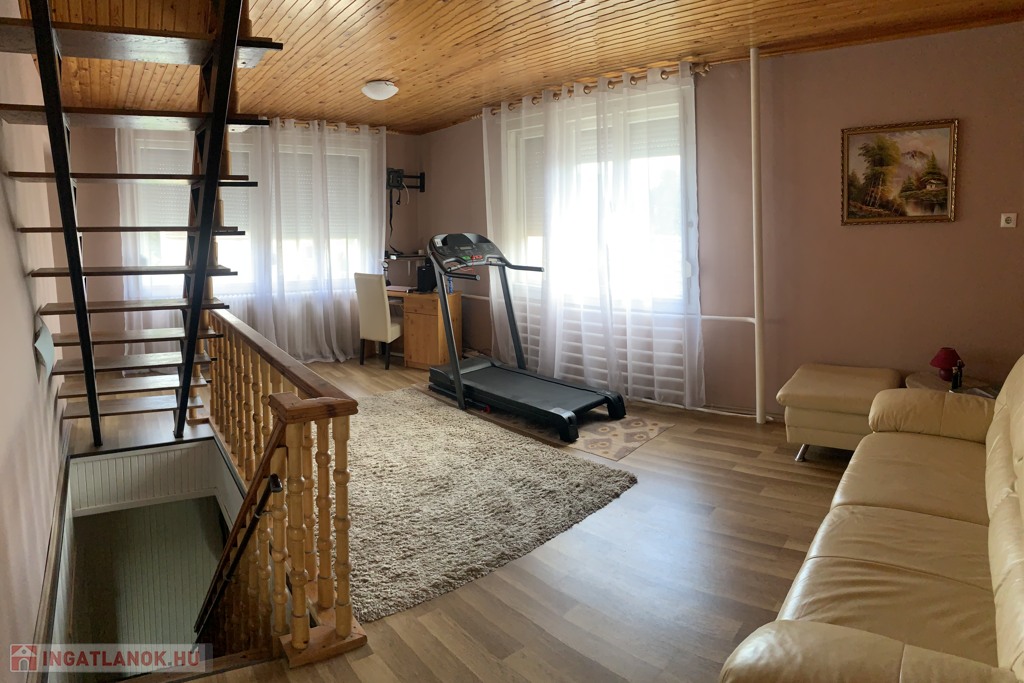 A FELSŐ SZINTEN: tágas, napfényes nappali, 2 hálószoba, mellékhelyiség és a kádas, zuhanyfülkés fürdőszoba kapott helyet.