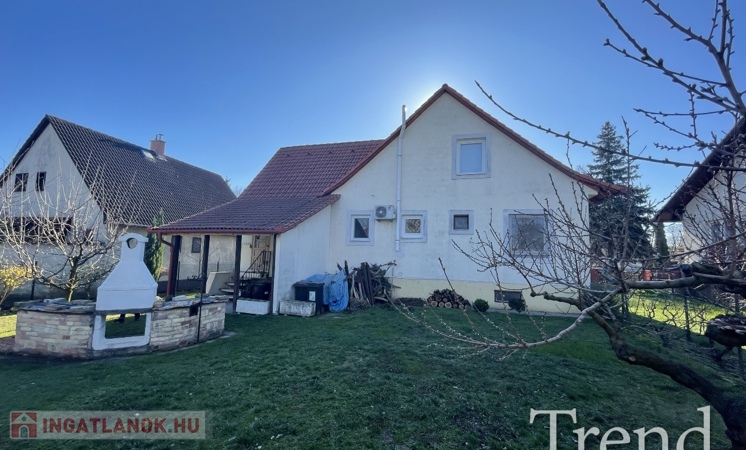 Az ingatlan egyik része 1984-ben épült, majd 1987-ben bővítették, falazata B30-as téglából készült, a tető 2007-ben lett felújítva, új héjazatot kapott Bramac cseréppel lett fedve. A földszinten előszoba, nappali, közlekedő folyosó, két nagy méretű hálószoba, étkező + konyha, fürdőszoba (sarokkád), külön álló wc található. Az emeleten nappali, két szoba, gardrób szoba, fürdőszoba (zuhany+wc), terasz kapott helyet. A földszinten az összes nyílászáró ki lett cserélve, az emeleten az utca felől még az eredetileg beépítettek vannak, a kertre nézők cserélve lettek. A fűtés vegyes tüzelésű kazánról, illetve 3 éve beépített BOSCH kondenzációs gázkazánról működik radiátor hőleadókon keresztül.