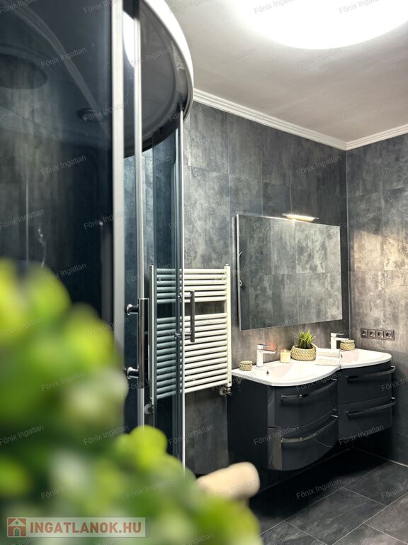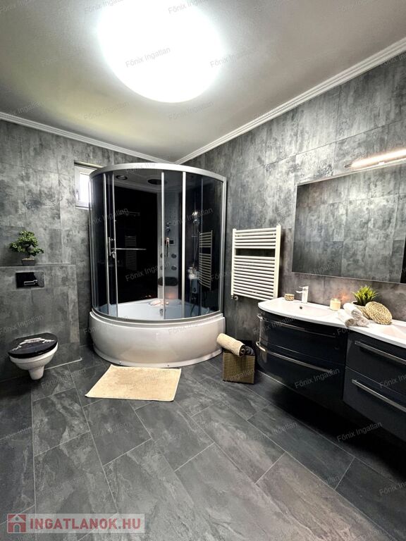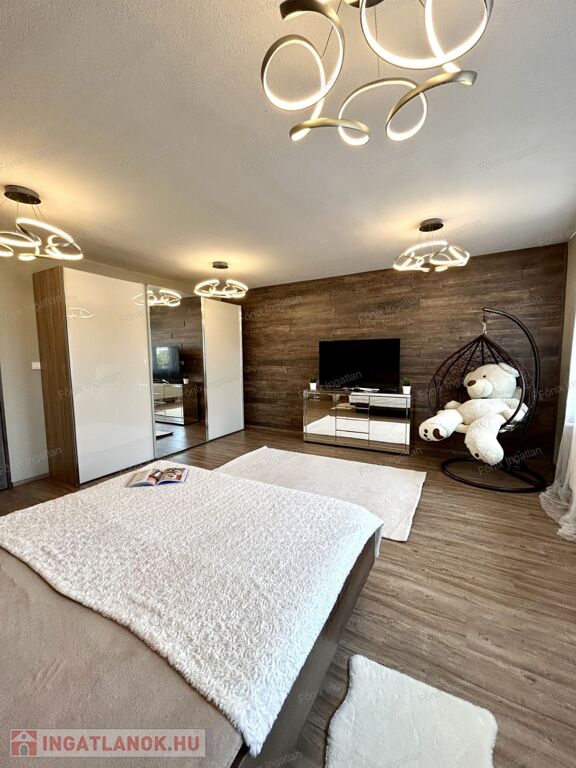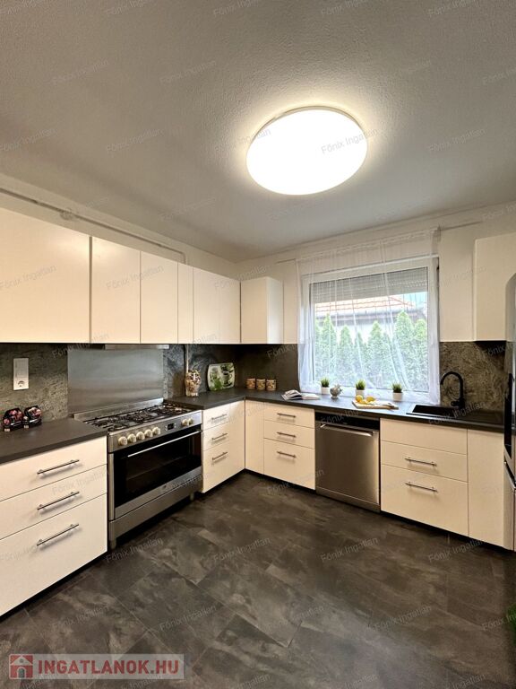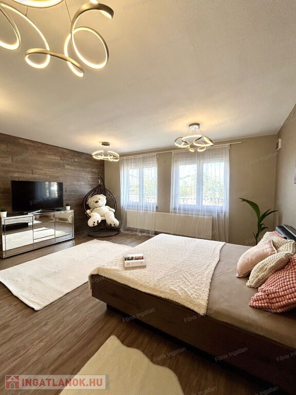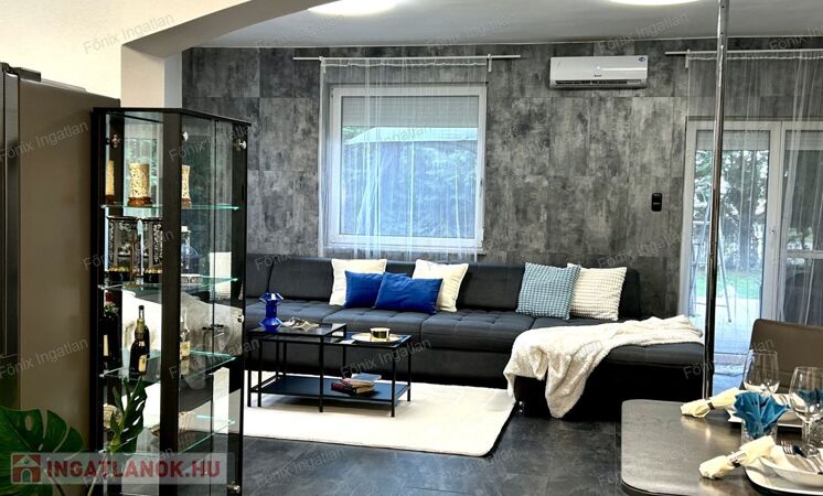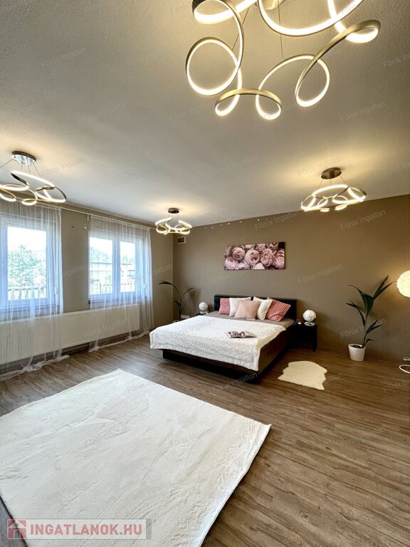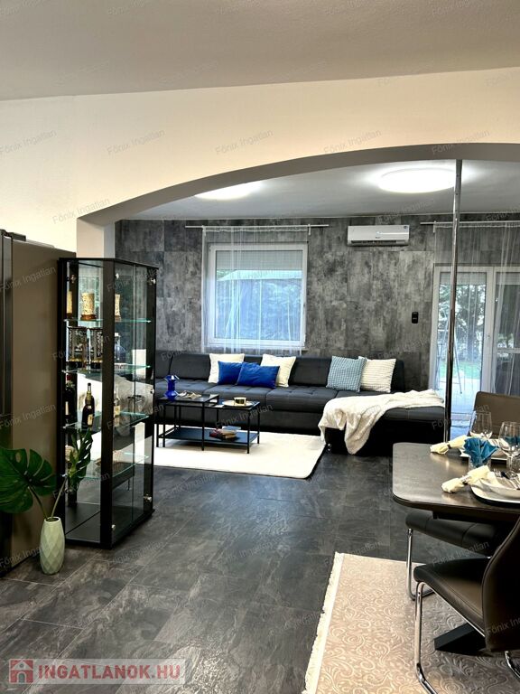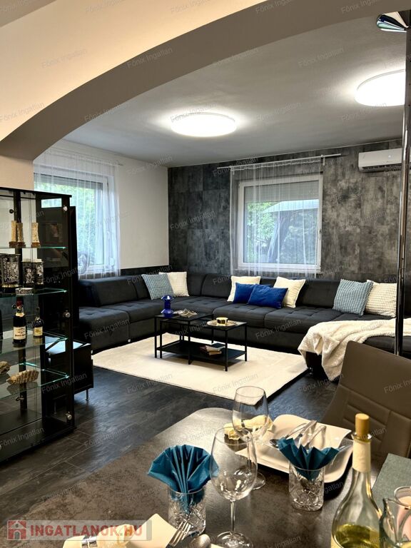 A 163 nm-es családi ház négy nagy méretű szobával rendelkezik. A hatalmas, amerikai konyhás nappali központi szerepet tölt be az otthon életében. A modern,vadonatúj konyha kiemelkedő funkcionalitást és esztétikát kínál. Az ingatlan duplakomfortos, két beépített hidromasszázs fürdőszobával felszerelt. A dupla gardrób biztosít elég tárolóhelyet a család minden tagjának. A lakás fűtését gazdaságos gáz cirkó rendszer biztosítja. Az ingatlan teljes egészében felújított,folyamatosan karbantartott,költségmentes.
