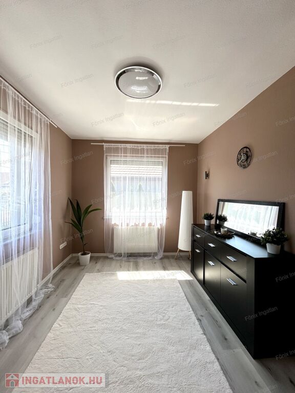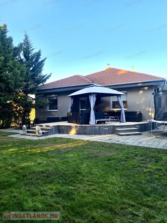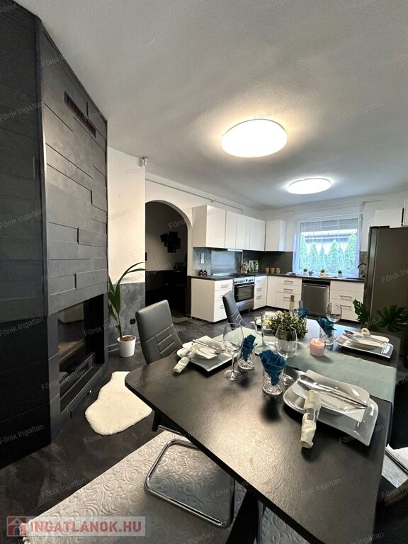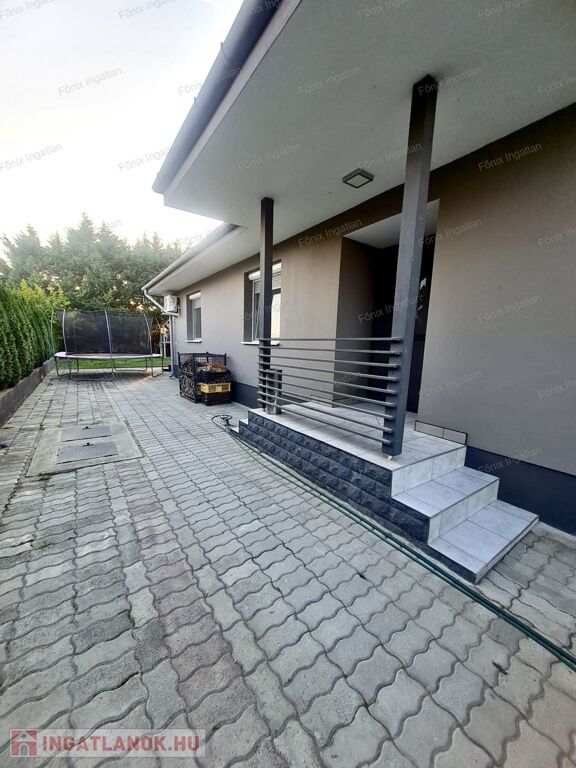 A családi ház 1991-ben épült, teljeskörűen felújított, modern stílusú. A ház földszintes kialakítású,akadálymentesített. A külső homlokzat 5 cm dryvit szigetelést kapott, amely energiatakarékosságot biztosít. A parkosított telken hangulatos viacolorral lerakott beálló vezet az udvari parkolóhelyekhez. A nagy méretű terasz kellemes pihenőtér a család minden tagjának. A műanyag, szúnyoghálóval és redőnnyel felszerelt nyílászárók hozzájárulnak a rezsi csökkentéséhez. A környezetbe illő,modern, fatüzelésű és vízteres kandalló szemet gyönyörködtető kiegészítő.
