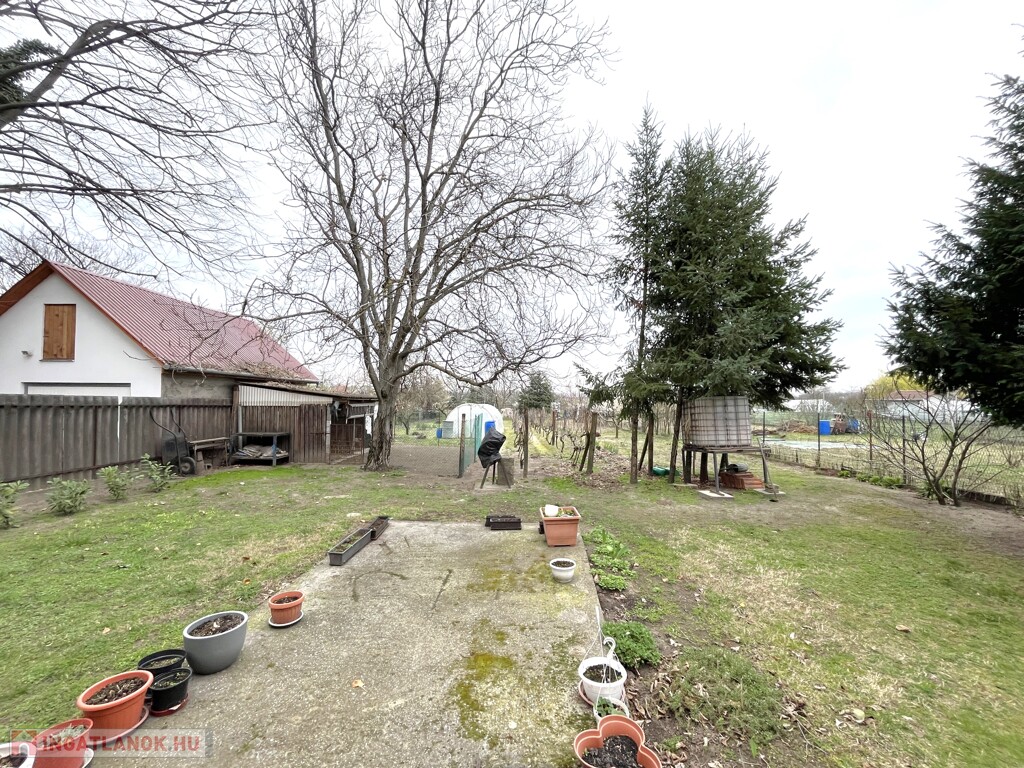 A kert rendezett, gyümölcsfák, kis veteményes van, az előkert virágos, a kertkapu előtt autóbeálló könnyíti meg a parkolást.