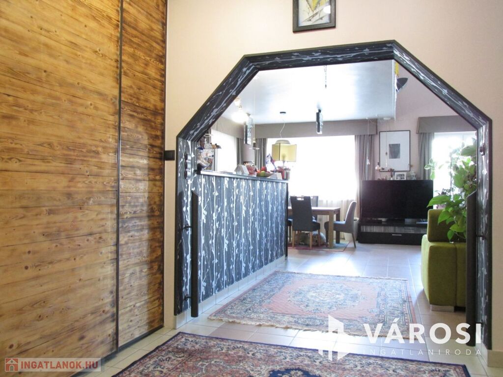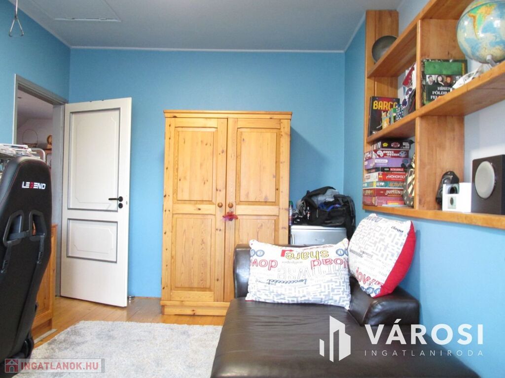 Az ingatlanban három szoba, két fürdőszoba, egy amerikai konyhás nappali, egy másik nappali, egy gyerekszoba, egy spejz, egy mosókonyha és egy gardróbszoba található, valamint egy 20 m²-es műhely az udvar végében lett megépítve. Az ingatlan helyiségei rendkívül kreatívan lettek kialakítva. Egyik fürdőszoba a földszinten van, amely zuhanyzóval lett ellátva, a másik pedig az emeleten, amelyben fürdőkád található. A földszinti fürdőből nyílik a mosókonyha, ami egy WC-vel és egy beépített szekrénnyel lett kiegészítve. A másik WC az emeleten lévő fürdőszobában van. Az egyik szoba szintén praktikusan ki lett egészítve egy beépített szekrénnyel, amelynek a külső része az előtérből nyitható, ez cipősszekrényként funkcionál. Az otthon melegéről gázcirkó gondoskodik, a hőleadás a földszinten padlófűtésen keresztül, az emeleten pedig radiátorok segítségével történik. A nyári hőségben két klíma is lehetőséget nyújt a lakás hűtésére. A külső nyílászárók műanyagból, a belsők pedig fából készültek. Az épület falazata és a födém megfelelően szigetelt. Az ereszcsatorna két éve lett kicserélve.