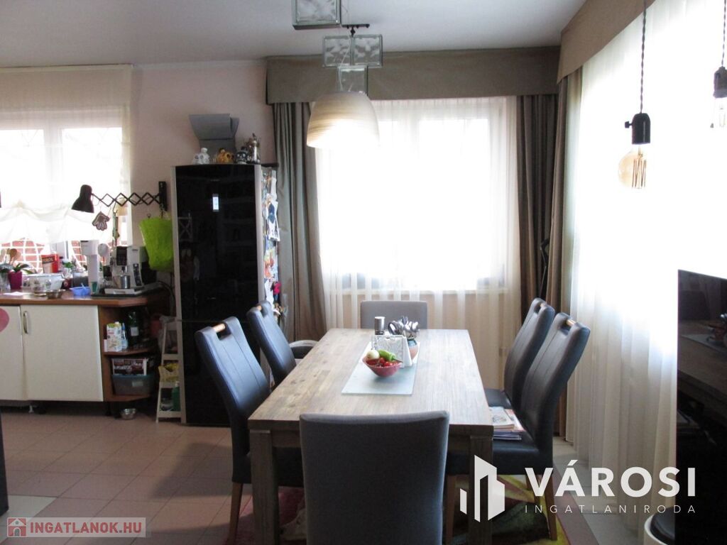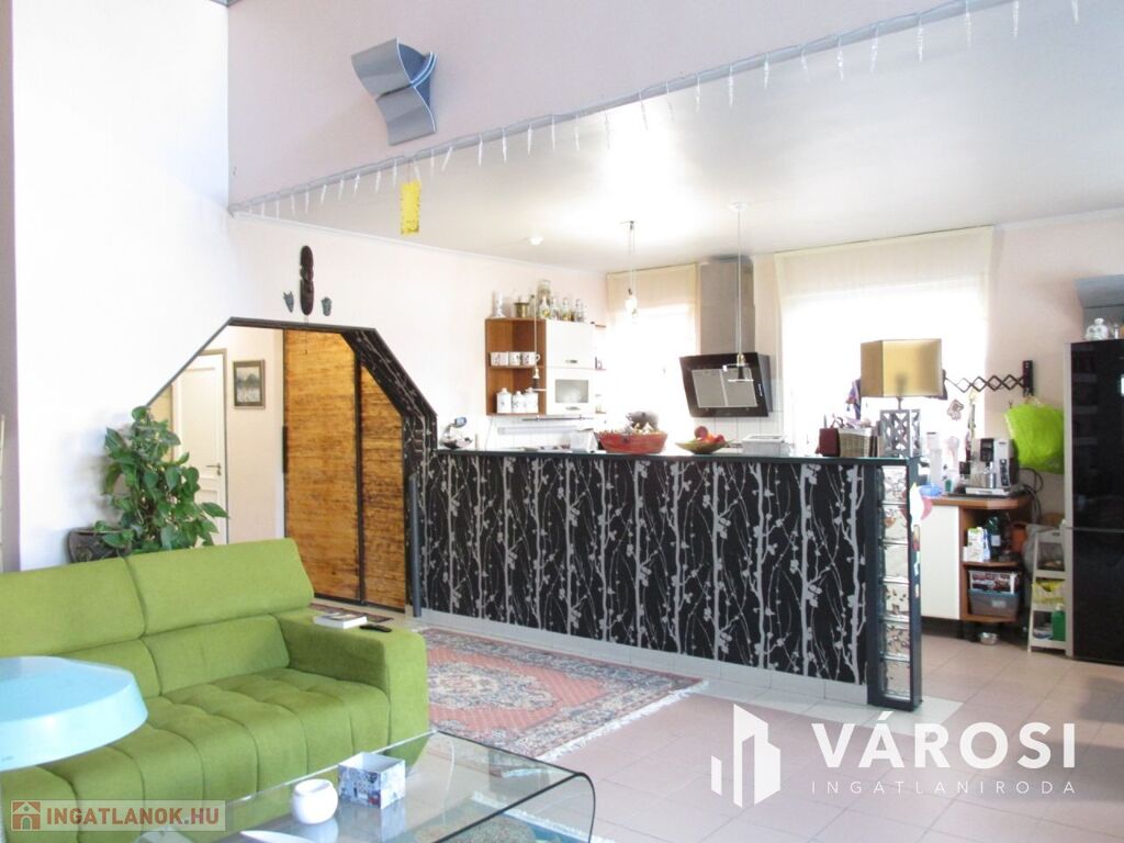 Az amerikai konyhás nappali egyszerűen bámulatos, 3,5 méter hosszú konyhapult választja el a konyhát a nappalitól, az étkezőasztal pedig a végén lett elhelyezve. Az udvar egy része szépen térkövezett, amelyen egy tavaly készült szaletli található. A tágas nappalinak és a szaletlinek együtt meg van a maga varázsa családi és baráti összejövetelek lebonyolításához. Az udvar másik részét tuják és dísznövények teszik színesebbé, amelyek öntözése fúrt kút segítségével megoldott. A ház oldalában fedett kocsibeálló biztosít helyet két autónak kerítésen belül, valamint a ház előtt is rendelkezésre áll két autónyi hely.