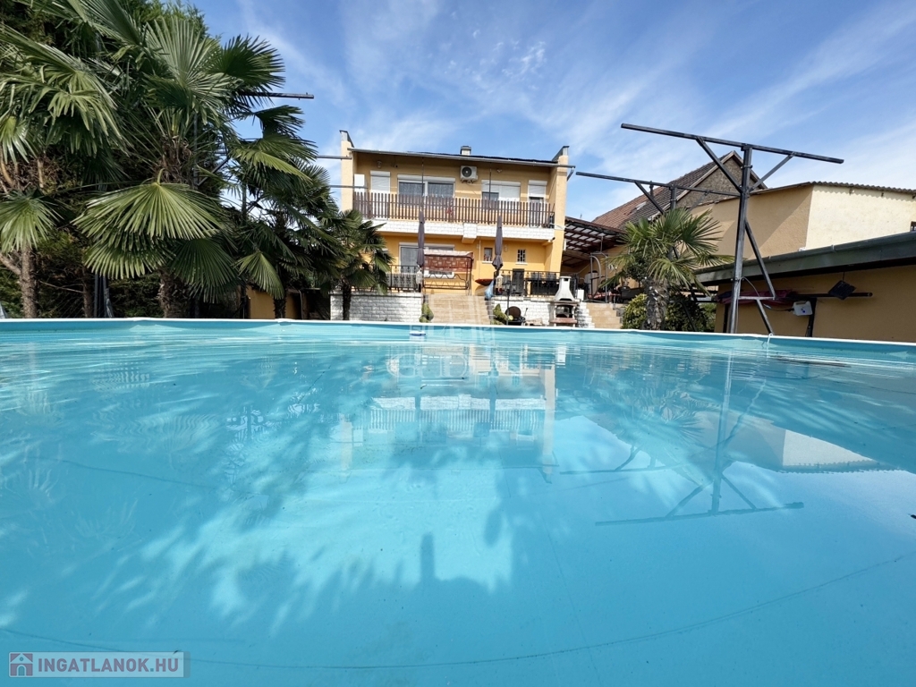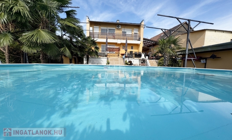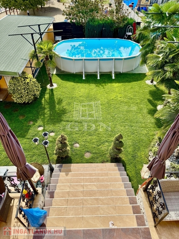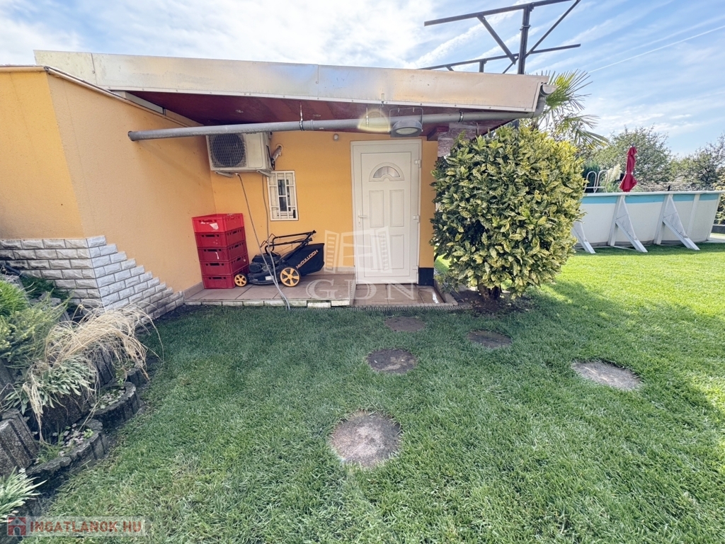 Az udvar gondosan parkosított, gyönyörű gyep és pálmafák teszik hangulatossá. A telken található egy 30 m²-es melléképület is, amely kiválóan alkalmas tárolásra, hobbihelyiségnek vagy műhelynek.