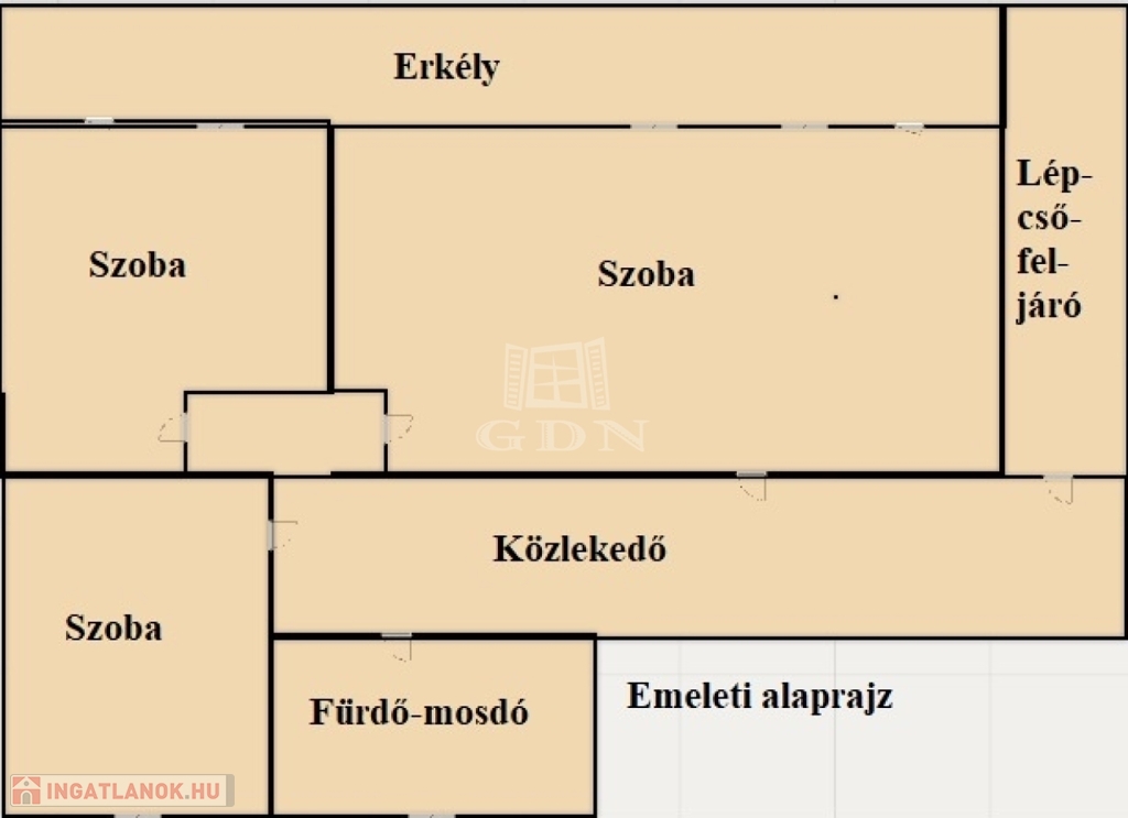 Emelet: 3 hálószoba, fürdőszoba WC-vel