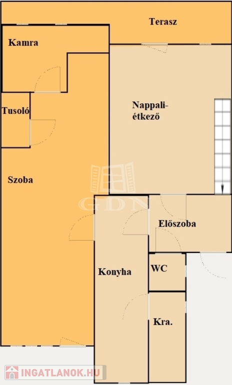 Földszint: előszoba, tágas nappali, konyha, külön WC, valamint egy sokoldalúan hasznosítható helyiség, amely jelenleg dohányzóként funkcionál, de könnyedén átalakítható dolgozószobává, vendégszobává vagy fitneszhelyiséggé. Itt egy hidromasszázs zuhanyfülke is található.